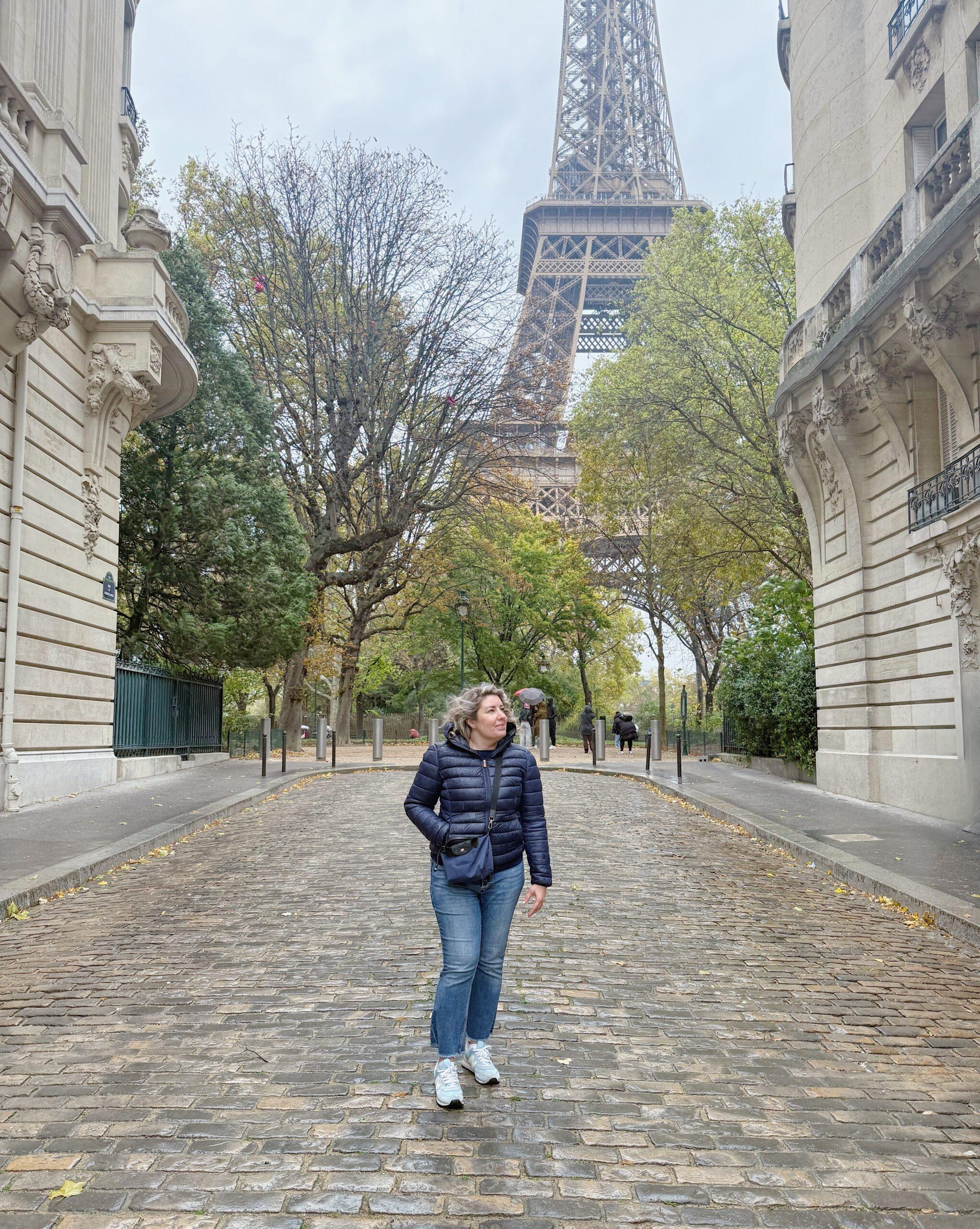 Anche sotto la pioggia, questa strada conserva un fascino incredibile: le facciate eleganti dei palazzi parigini e il riflesso sull’asfalto bagnato rendono ogni scatto ancora più suggestivo. Noi qui abbiamo fatto mille mila foto, tra le case bellissime e la Torre che spuntava sullo sfondo, senza praticamente incontrare nessuno. Un angolo autentico e silenzioso, perfetto per chi ama catturare la magia di Parigi anche nelle giornate grigie.