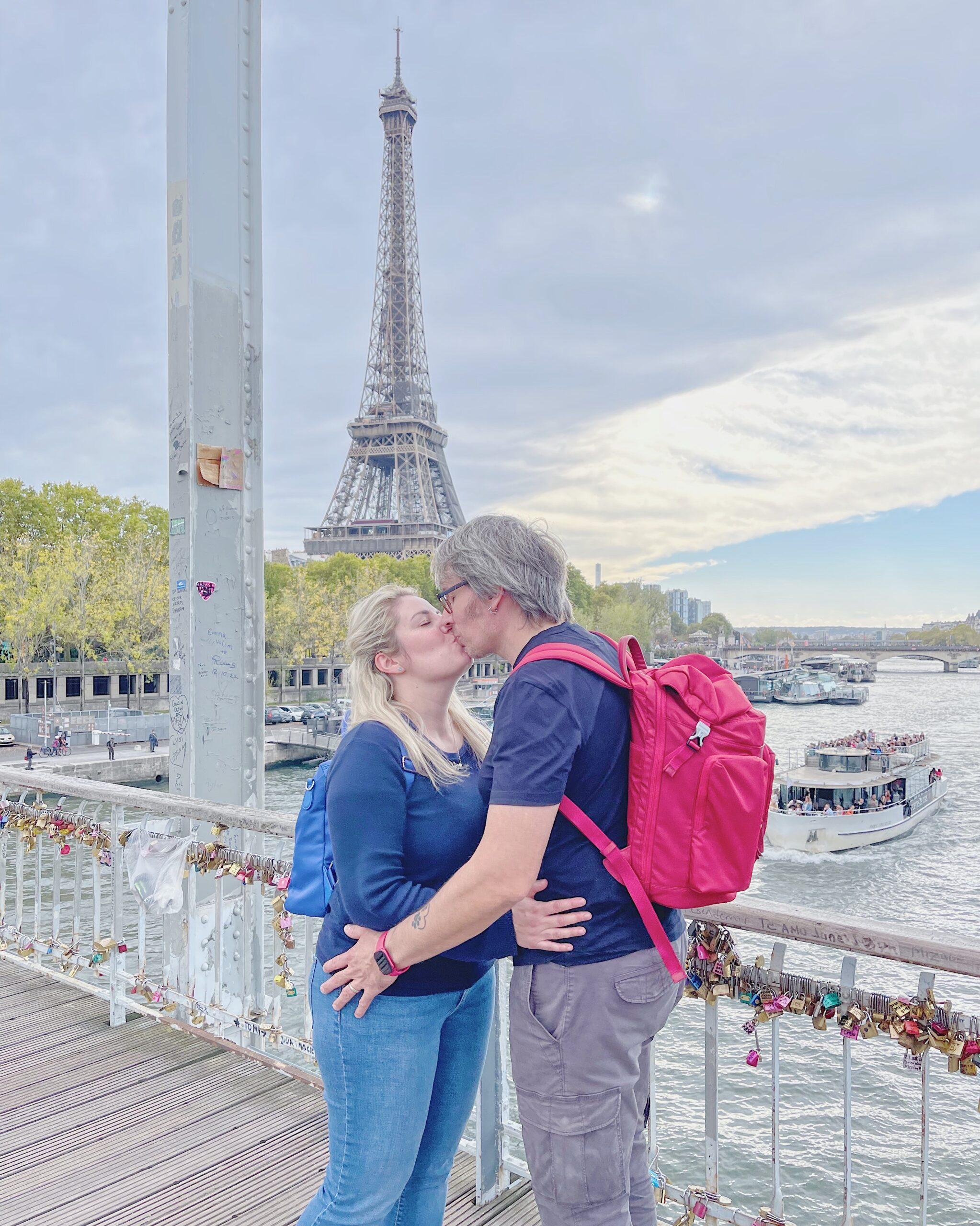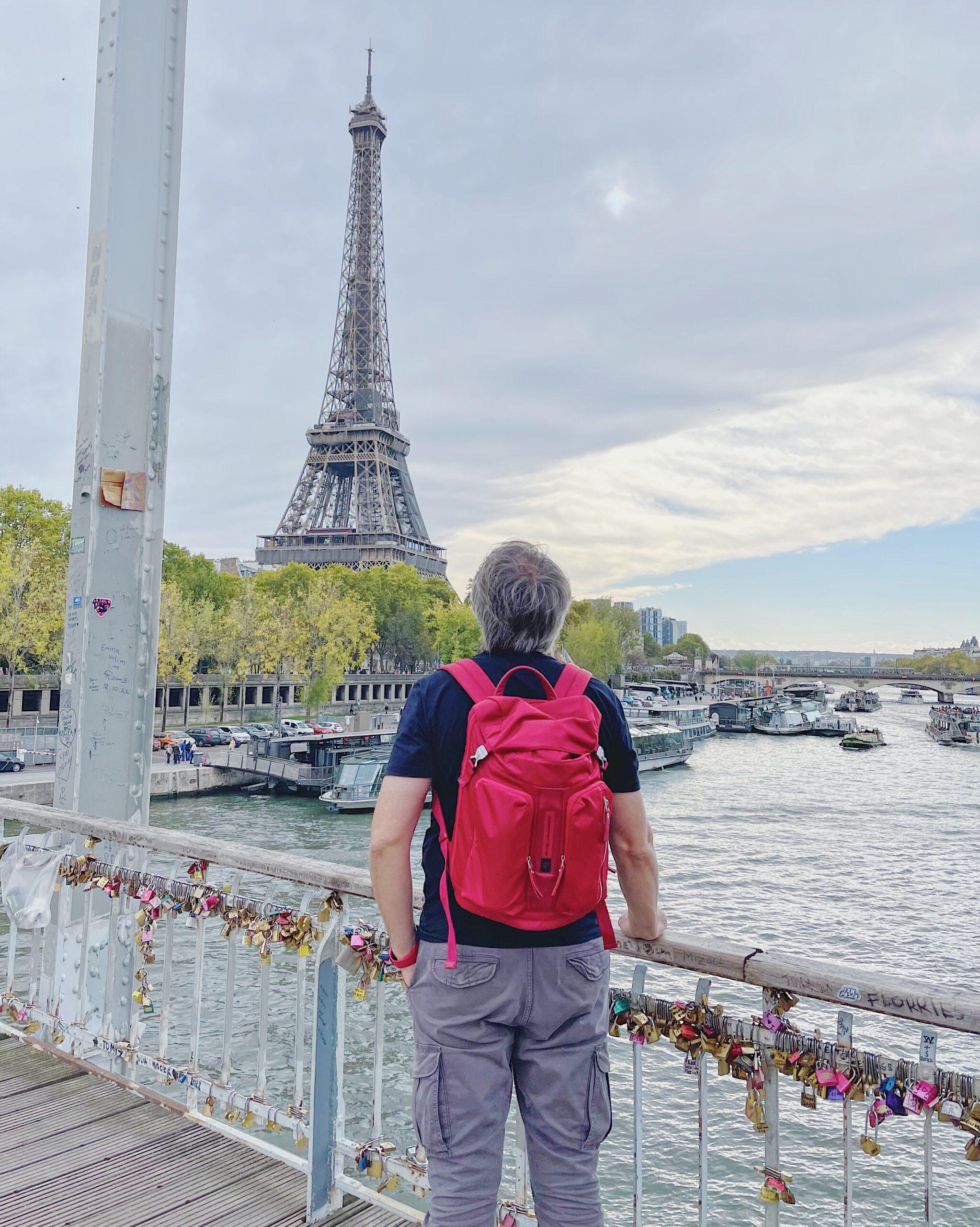 Anche se quando siamo andati soffiava un vento fortissimo e pioveva, il fascino di questo luogo resta intatto: le arcate in ferro, la Senna e la vista sulla Torre creano un’atmosfera cinematografica.